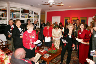 A Very Merry Christmas and Happy Holiday Season from the Prime Timers ABF. George and Leslie Mims directed the caroling. The Prime Timers Christmas Party was great fun. Skip and Caroline Maryan hosted. The photos are from the party. Since there are some "crowd scenes" here and web photos are small, all the photos are "clickable" bringing up an enlarged version. Use your browser "back" button to return, or the backspace key on your keyboard. George got everyone into the act, including host Skip Maryan. Wendy Fullenweider and Maxie Kech. This photo is from George Mims position at the synthesizer. He had everyone take a bow! Caroling at the Christmas Party. Craig Loomis (l) and George Laigle. Prime Timers Contact names and numbers Co-Leaders