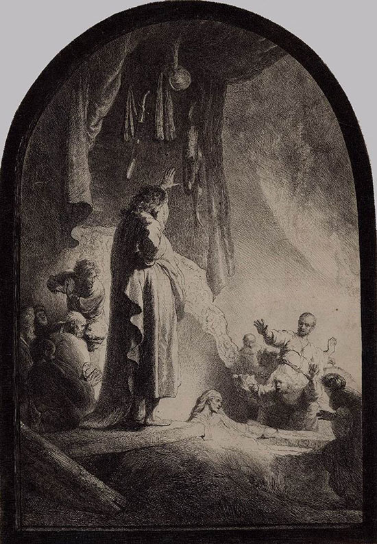 The Raising of Lazarus, c. 1632, Harmenszoon van Rijn Rembrandt, etching and burin, third state of ten at the British Museum, London